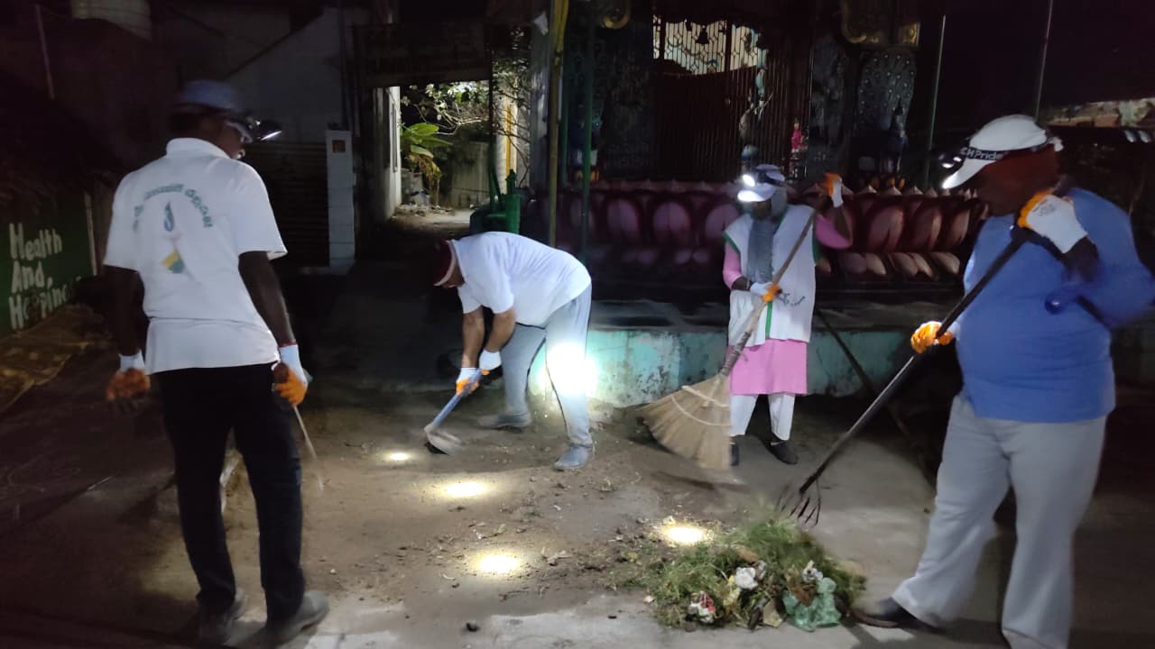 వీధి దక్షిణ భాగం 60 గజాలు కూడ 10 మందికి గడ్డి చెక్కుడుకూ, సింగిల్ యూజ్ ప్లాస్టిక్కుల ఏరుడుకూ, ఊడుపుకూ అవకాశమిచ్చింది. అయ్యో! గృహిణులు ఇళ్ల ఎదుట, దుకాణాల ఎదుట ఊడ్చి, ముగ్గులు పెట్టారు గాని, మూరెడెత్తు గడ్డినీ, పిచ్చి మొక్కల్నీ, వాటి నడుమ ప్లాస్టిక్ వ్యర్ధాల్ని ఎందుకు ఉపేక్షిస్తారో తెలియదు!