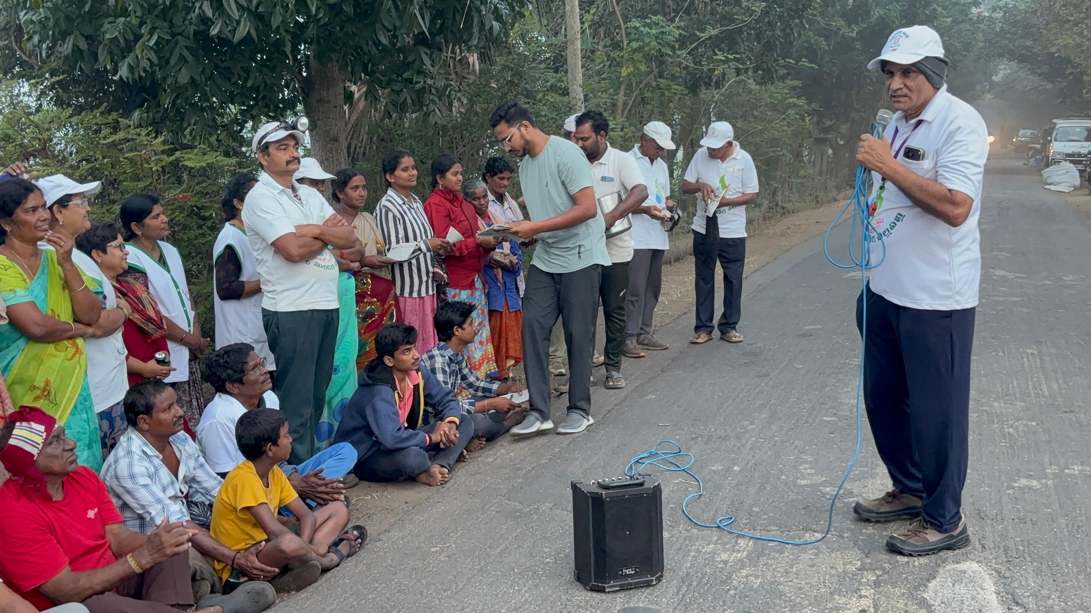 రేపటి వేకువ మరల ఇదే. P.K.పల్లి రహదారి కాలుష్యాల పని పట్టాలని నిర్ణయించి, 7.00 కు నేటి కార్యక్రమం ముగించారు!