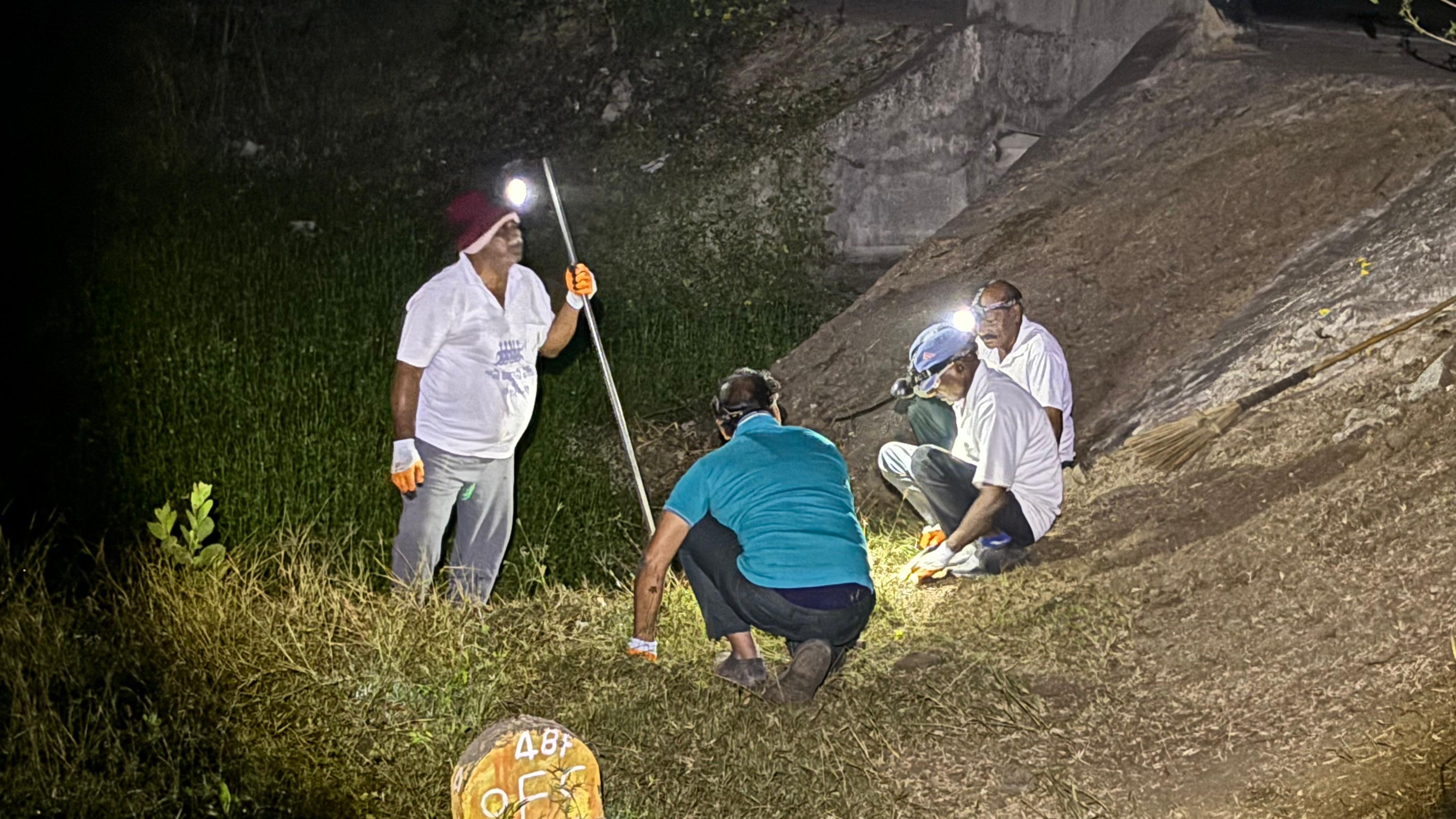 రహదారి తూర్పు పడమర భాగాల్లో ఏడేసి మంది డ్రైన్ల మరామత్తుకూ దిగారు. అక్కడి ప్లాస్టిక్, గాజు సీసాల, చిత్తు పేపర్ల, పిచ్చి మొక్కల, గడ్డి తీగలను ఏరి, ఖండించి, అదేదో వాళ్ల ఇళ్ల వరండా అన్నట్లు చతికిలబడి శుభ్రం చేశారు!