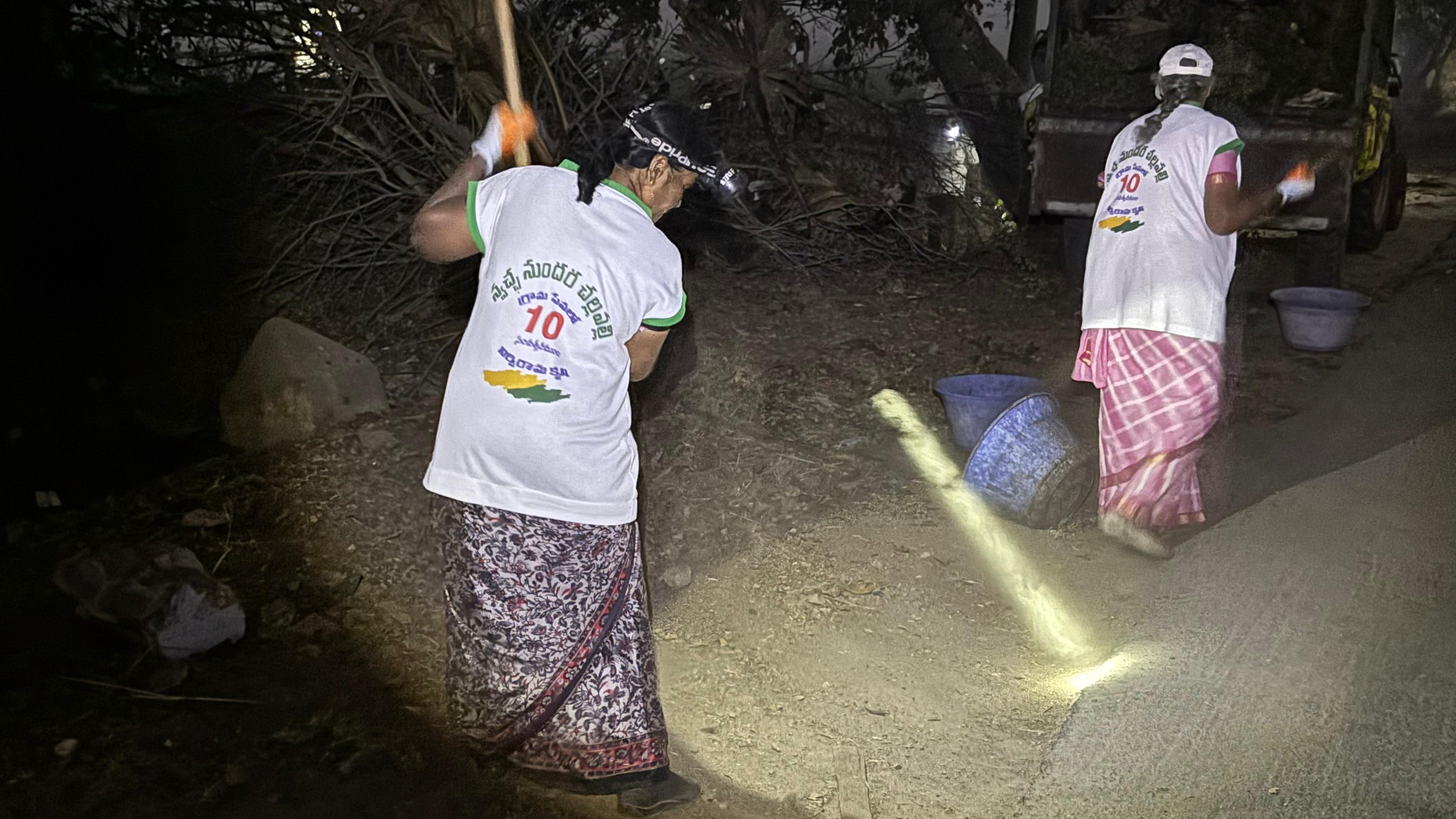 - రోడ్డు మీద దుమ్మూ, చెట్ల ఆకులూ, పుల్లలూ కనిపిస్తే మహిళా కార్యకర్తలు మాత్రం సహిస్తారా? వాహనాలను కాచుకొంటూ వాళ్ళ పని వాళ్లు చేసేశారు!