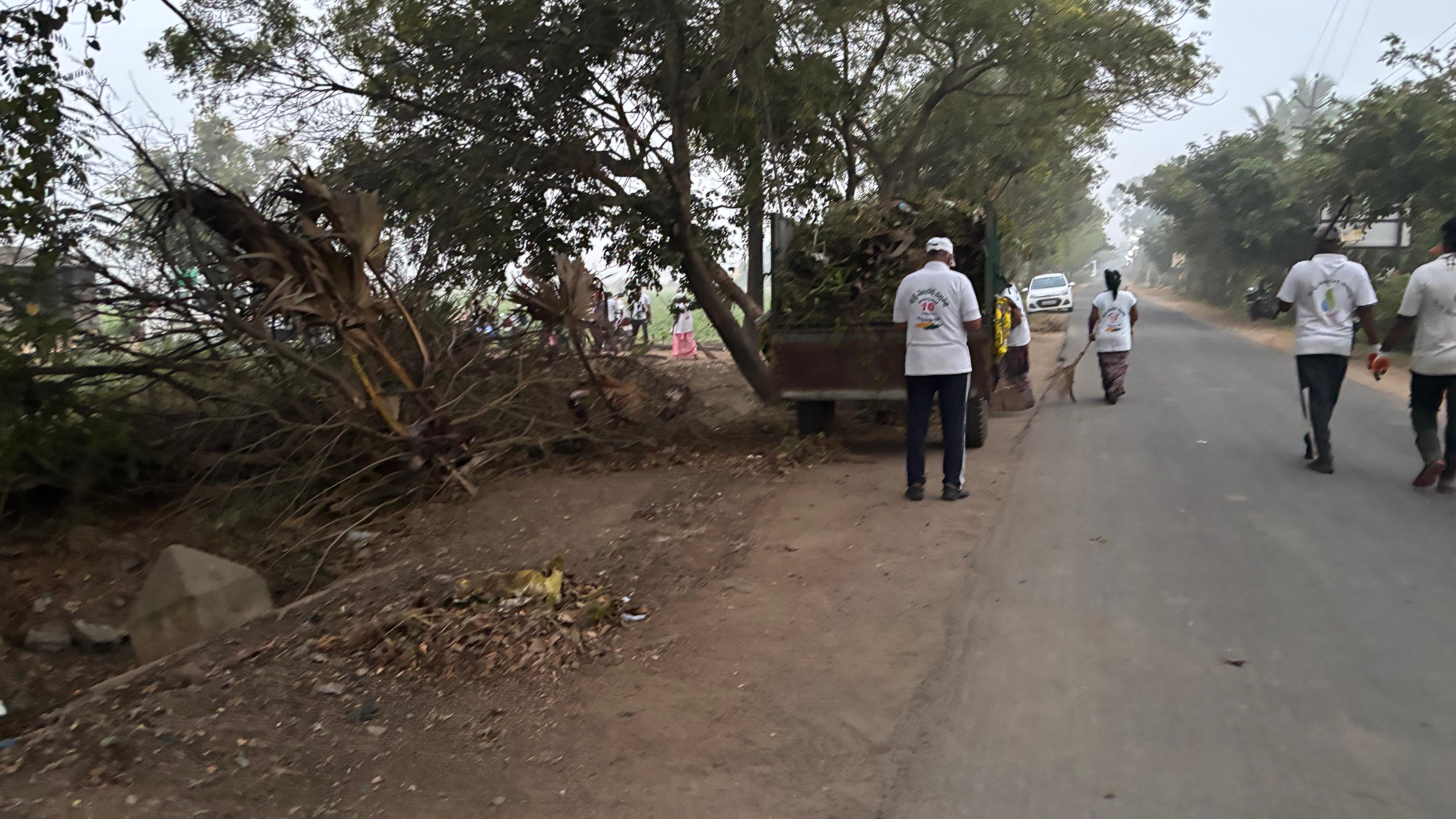 సోమవారమూ, పండుగ మర్నాడూ కారణాలేమో గానీ – 16.2.26 న – NH 216, P.K. పల్లి బాటల కలయిక వద్ద - నిర్ణీత సమయానికి ముందుగా 12 గురూ, క్రమంగా మరో 12 గురూ జంక్షన్ శుభ్రతకు దిగారు. 4.20-6. 20 నడుమ శక్తివంచన లేకుండా –