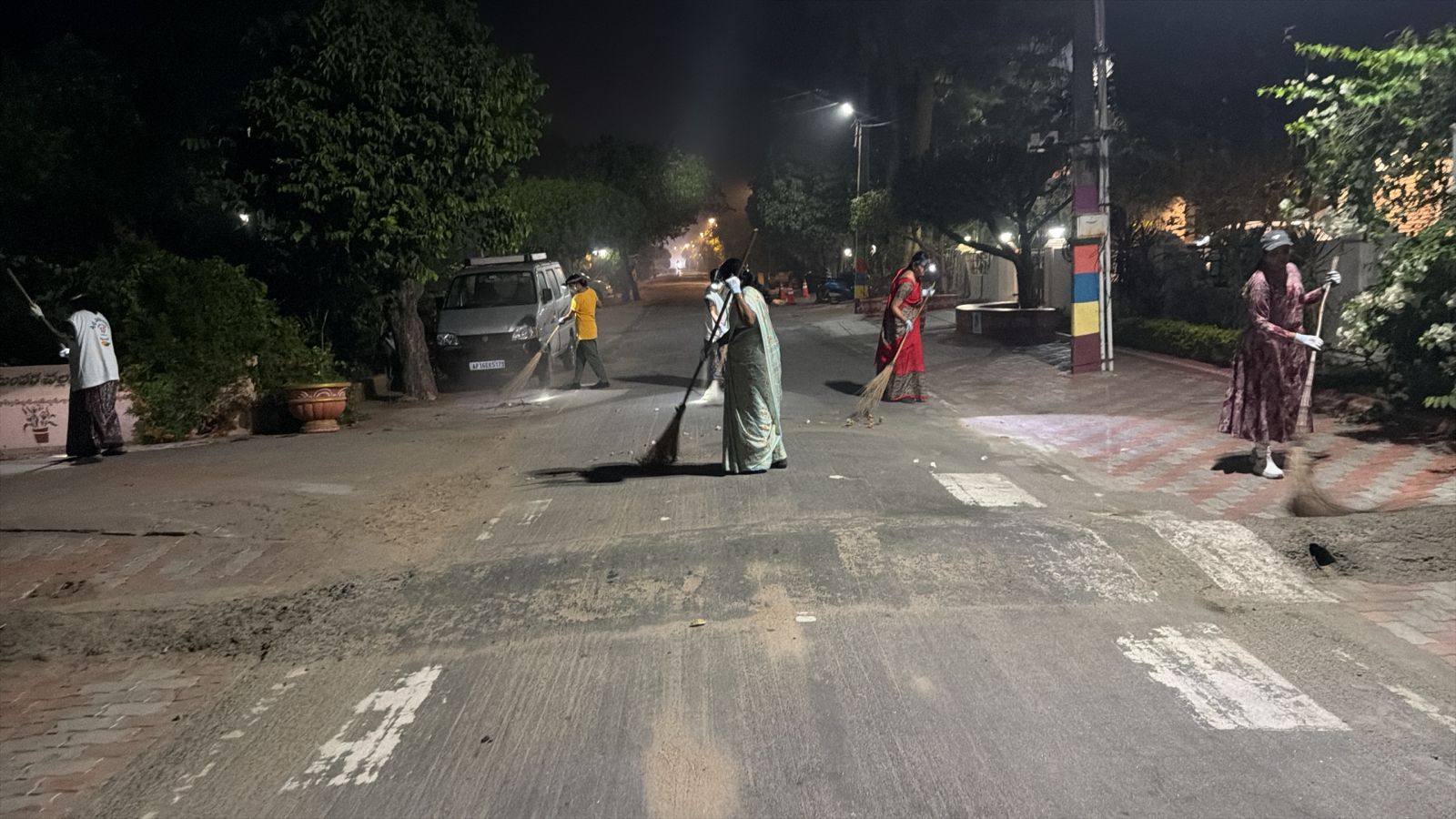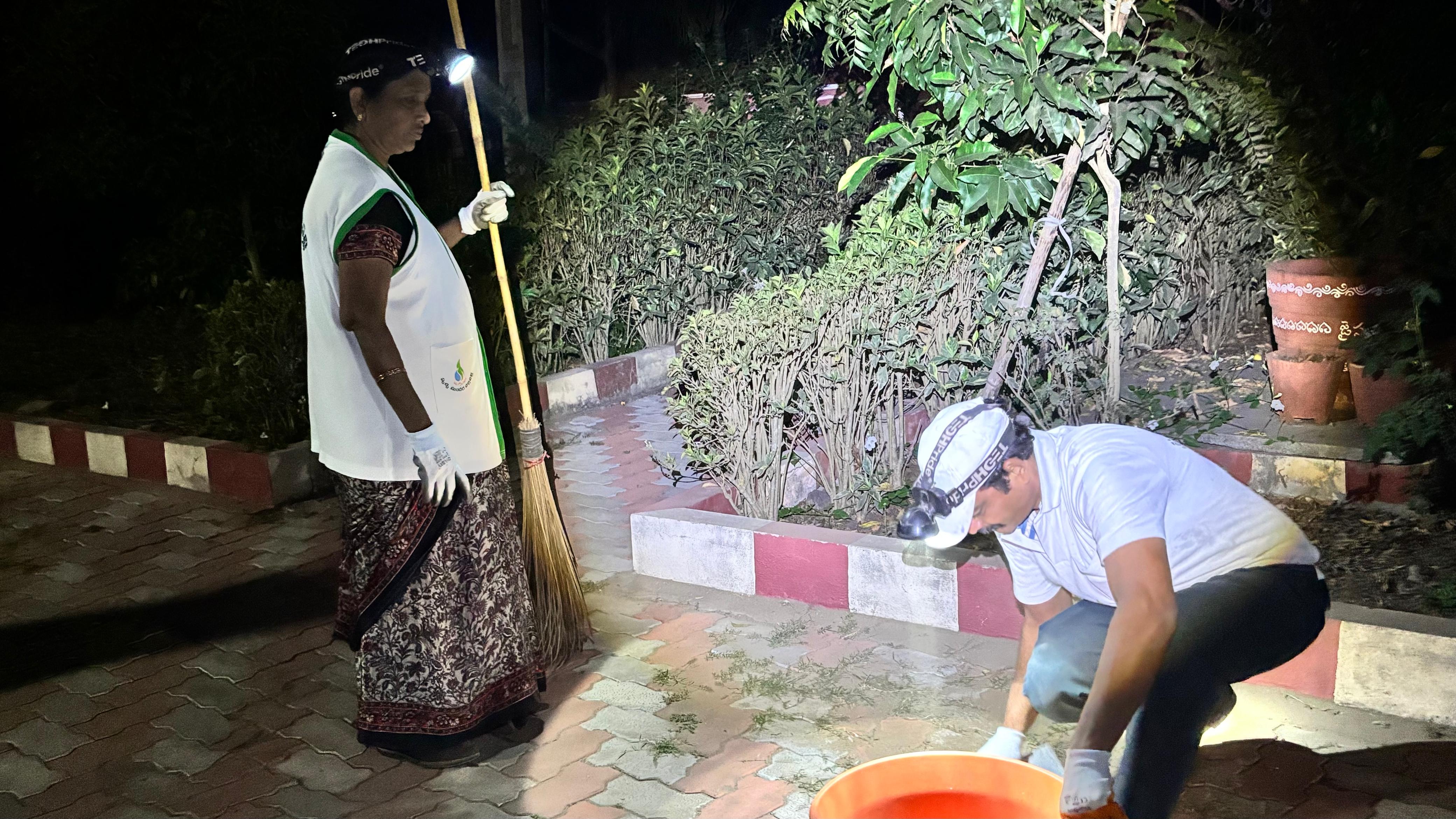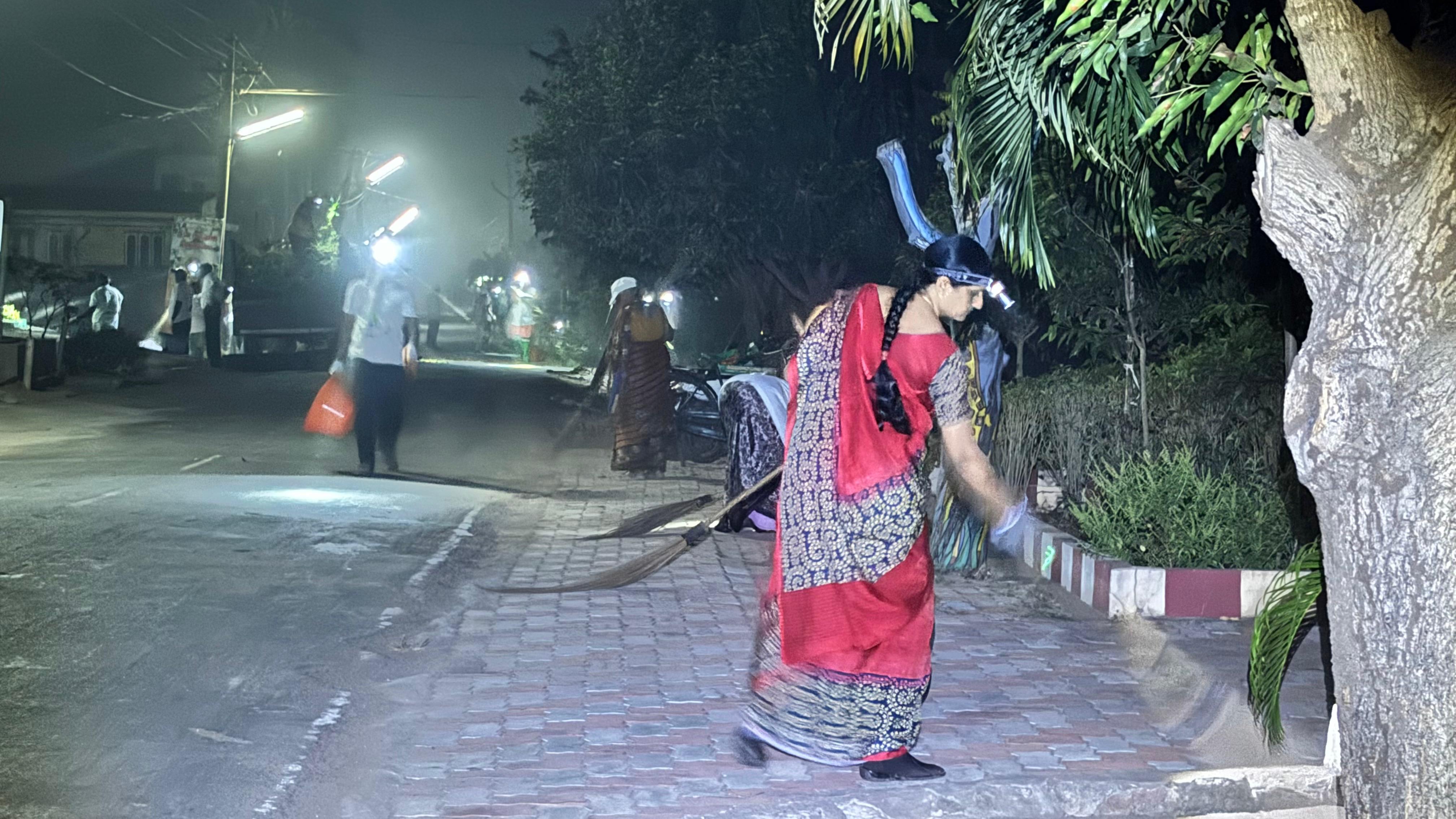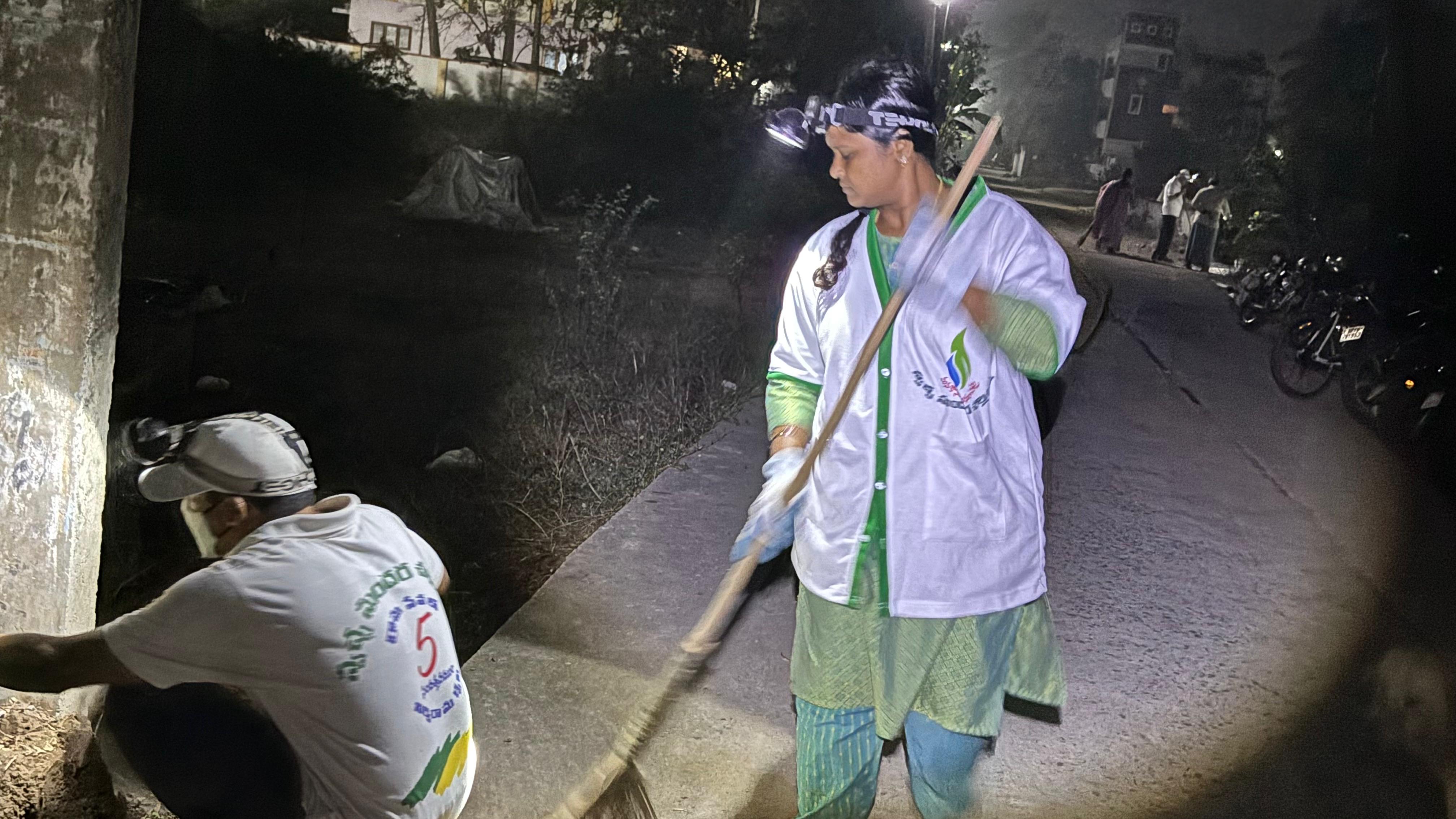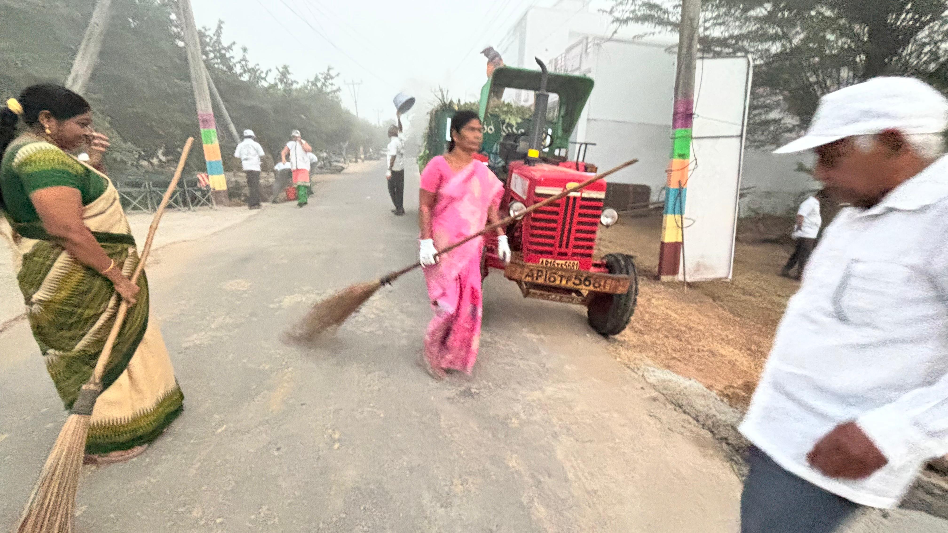 - ఈ ఫిబ్రవరి మాసాంతపు శనివారం మాత్రం మరీ వేకువ 4.17 కే 20 మందితో గంగులవారిపాలెం వీధిలోని సన్ ఫ్లవర్ కాలనీ వద్ద ఆ రథచలనం మొదలై, 18 మంది మహిళలతో సహా-మొత్తం 55 మంది-కత్తులతో, చీపుళ్లతో, దంతెలతో, పారలతో ఈ స్వచ్ఛ రథాన్ని నెట్టడంతో -