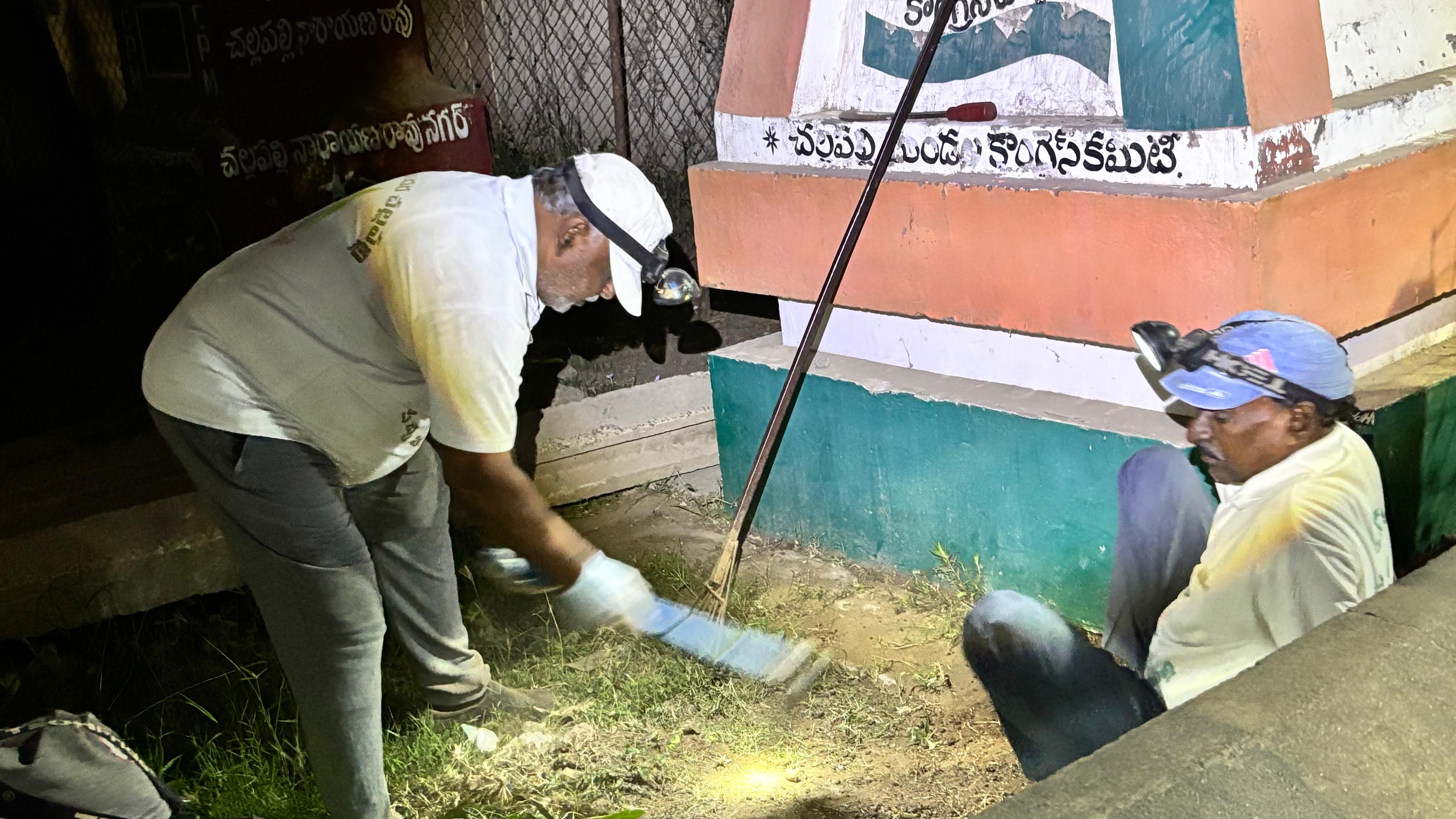 పనుల కాలం కొలతలు వేకువ 4.20-6.06 వరకు. ఆగినది బెజవాడ రోడ్డు లోని పెట్రోలు బంకు వద్ద; రకరకాల పర్యావరణహిత, గ్రామ శ్రేయోదాయక కృషి జరిగినది NTR పార్కు, 2 రోడ్ల జంక్షన్ ప్రాంతాలే.
