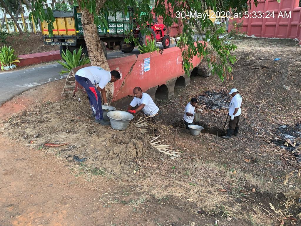 రెస్క్యూ టీం అంటే వాళ్ల మొండి పట్టుదల వేరు! డ్రైనులోని మట్టిని సేకరించి మహాబోధి పాఠశాల ప్రధాన ద్వారం ప్రక్కన వాన నీటికి కోసుకు పోయిన వాలులో నింపి, ఆ రోడ్డు కు రక్షణ కల్పించడం - వాళ్ళకిదేంలెక్క?
