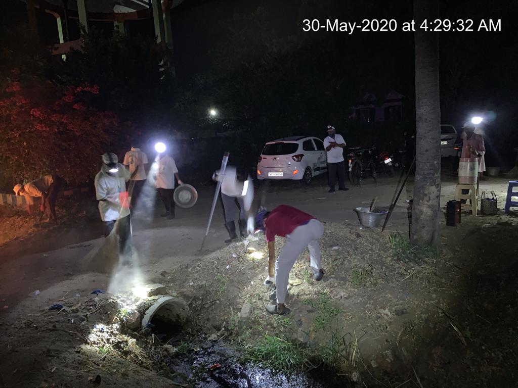 ఈ రోజు వాతావరణం చిత్రంగా మారింది. ఏ పనీ చేయక నిల్చున్నా, కూర్చొన్నా చాలు బొట్లు గాను, పనిచేసే వాళ్లకేమో ధారలుగానూ చెమట కారిపోతున్నది. మరి ఇలాంటి సమయంలో, ఈ చీకటిలో- మురుగు కాల్వల బాగు చేతలు, రోడ్లు ఊడ్చే పనులు, చెత్త లోడింగులు చేస్తున్న ఈ స్వచ్చంద శ్రమదాతల నిబద్ధత, ఆదర్శం, ముందుచూపు ఎంత గొప్పవై ఉంటాయి?