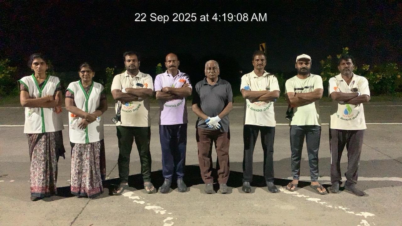 రాత్రి విపరీతంగా వర్షం పడి పని చేయుయుటకు కొంత అసౌకర్యంగా ఉన్నప్పటికీ యదా ప్రకారంగా స్వచ్ఛ సేవకు విచ్చేసిన 16 మంది కార్యకర్తలు 6 గంటల వరకూ శ్రమించిన కార్యకర్తలు విజిల్ మ్రోగగానే పనికి విరామమిచ్చి కాఫీ సేవించిన పిదప సమీక్షలో పాల్గొనారు.