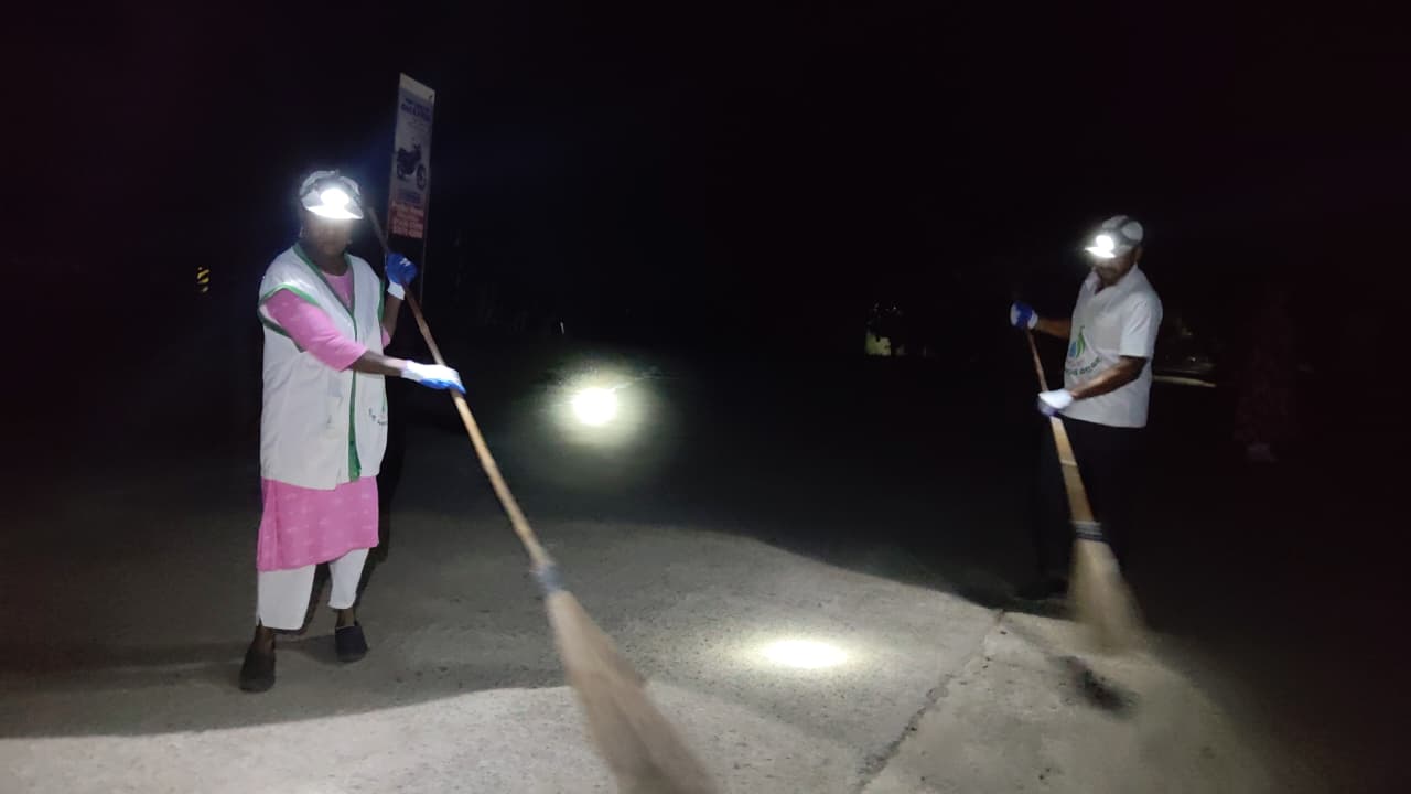 కార్యకర్తలలో కొంతమంది కాలేజి రోడ్ మొదట్లో రెండు ప్రక్కలా ఉన్న పిచ్చి మొక్కలను తొలగించి మహిళా కార్యకర్తలు అద్దంలా ఊడ్చి శుభ్రం చేశారు.