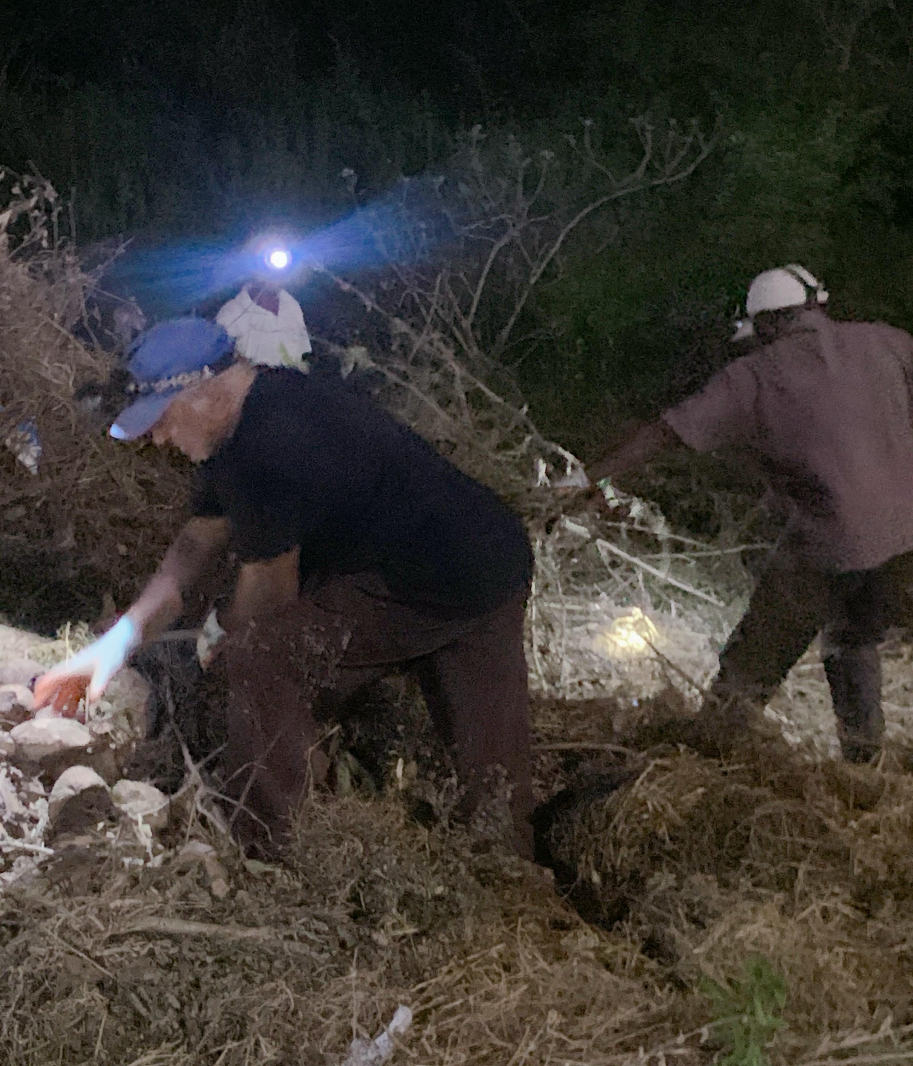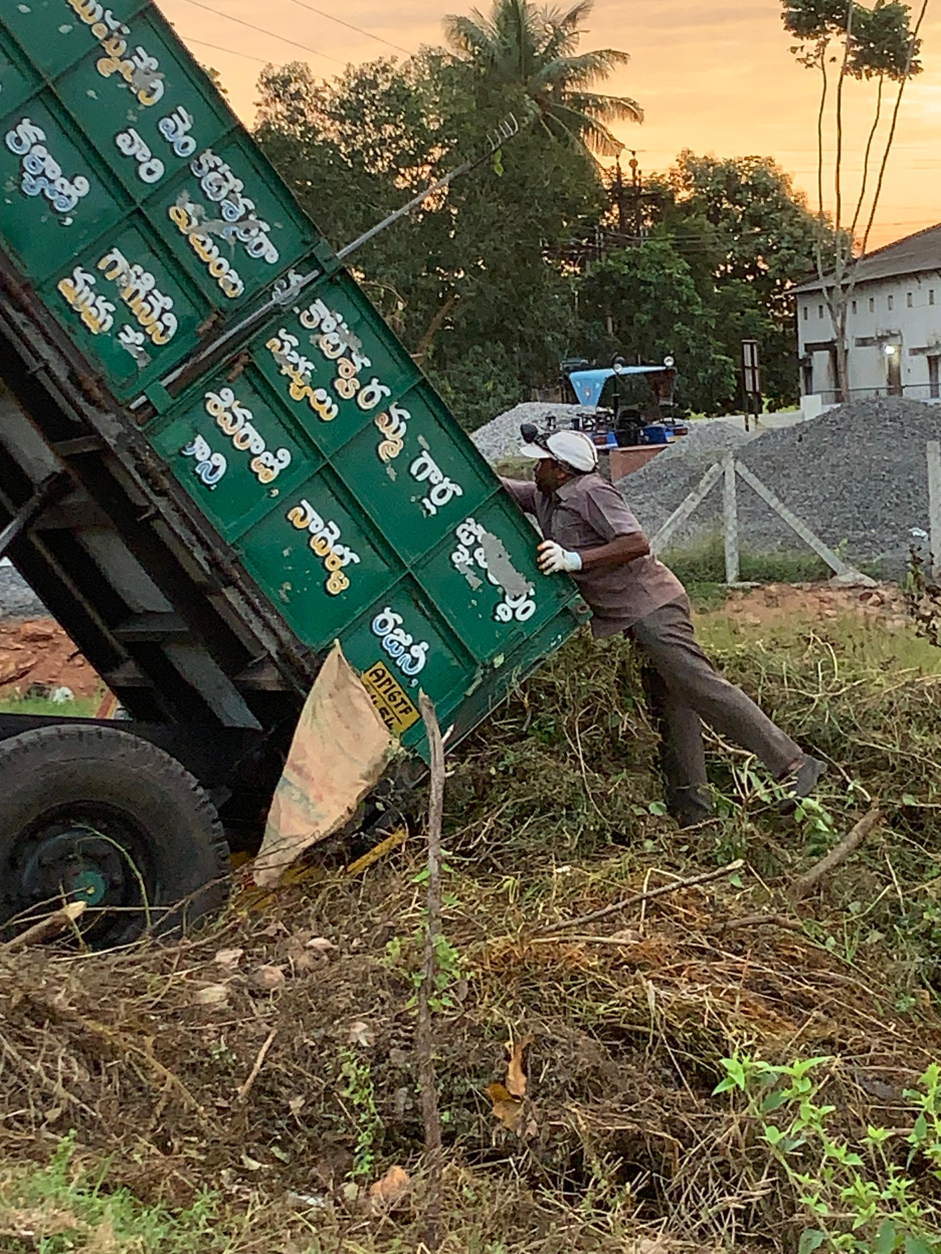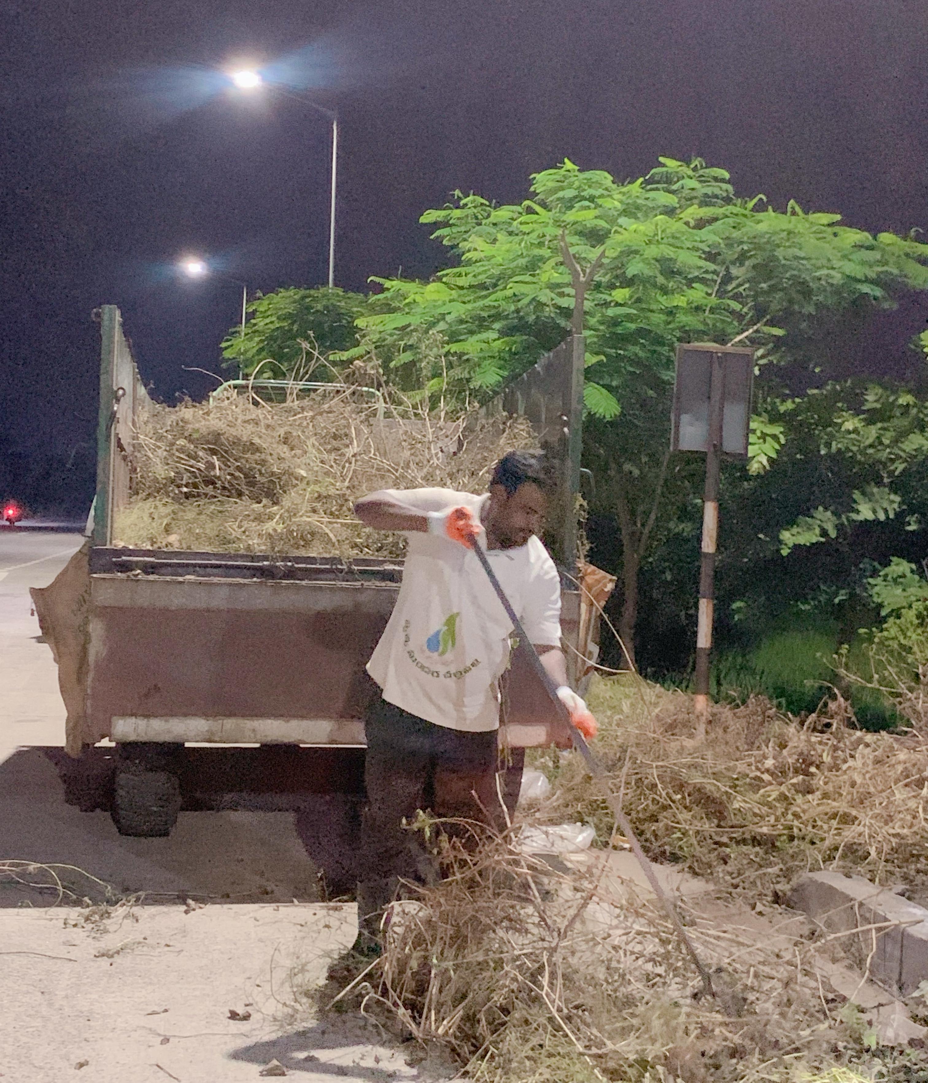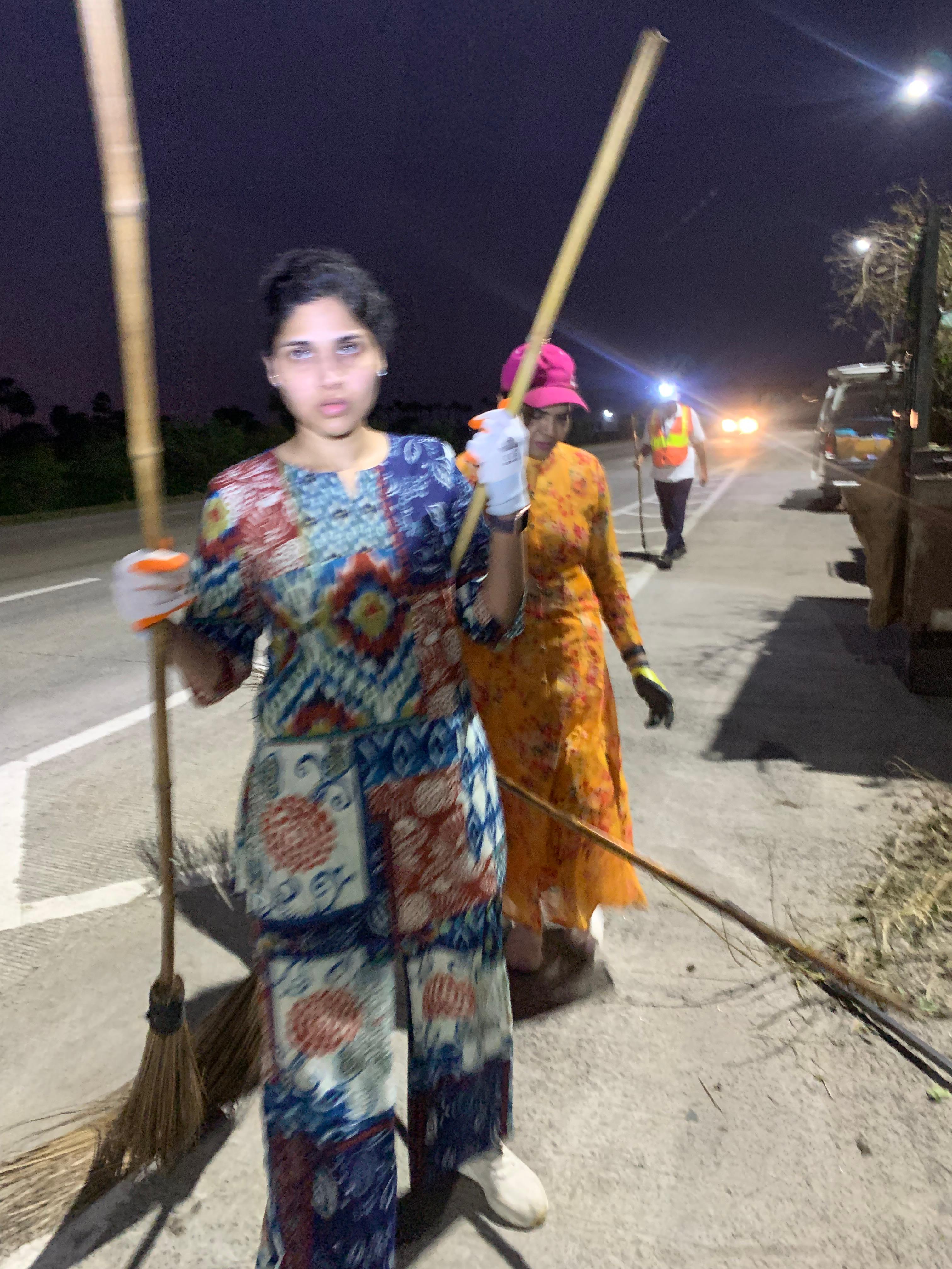 కార్యకర్తలలో ఒక బృందం (రెస్క్యూ టీం) సభ్యులు నిన్నటి చెత్తా చెదారం వ్యర్థాలను ట్రాక్టర్ లో లోడింగ్ చేస్తున్నారు. ఆ వెనుక మరొక మహిళా కార్యకర్త ఎంతో పరిశుభ్రంగా ఊడ్చి వేస్తుండటం గమనిస్తే చేసిన పని ఎంత పరిశుభ్రంగా అద్దంలా మెరుస్తుందో చూసిన వారికే తెలుస్తుంది.