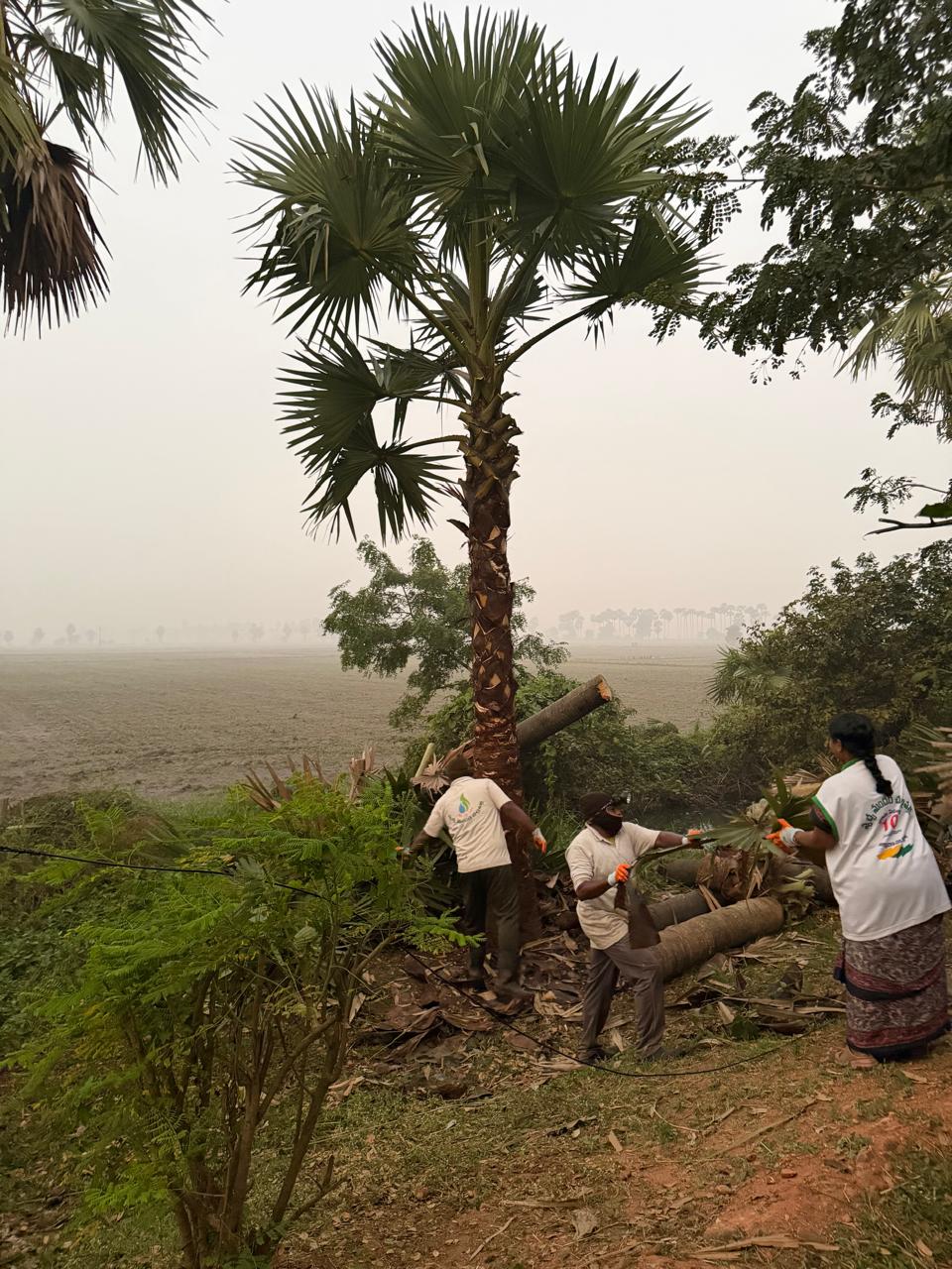 మట్టలు ఎండి, వ్రేలాడుతూ అసహ్యంగా కనిపిస్తున్న పొడవాటి తాటి చెట్టు సుందరీకరణలో మునిగి, గంటన్నర శ్రమించిన ప్రసాదుల ద్వయానిదే అసలు కష్టమంటే! బారైన నిచ్చెన ఎక్కీ, గడ కత్తితో మట్టలు కోసీ, వాళ్లకెందుకంత పట్టుదలో-6.10 తర్వాత ముచ్చటైన ఆ తాడి చెట్టు ఆకృతి చూస్తే అర్ధమౌతుంది.