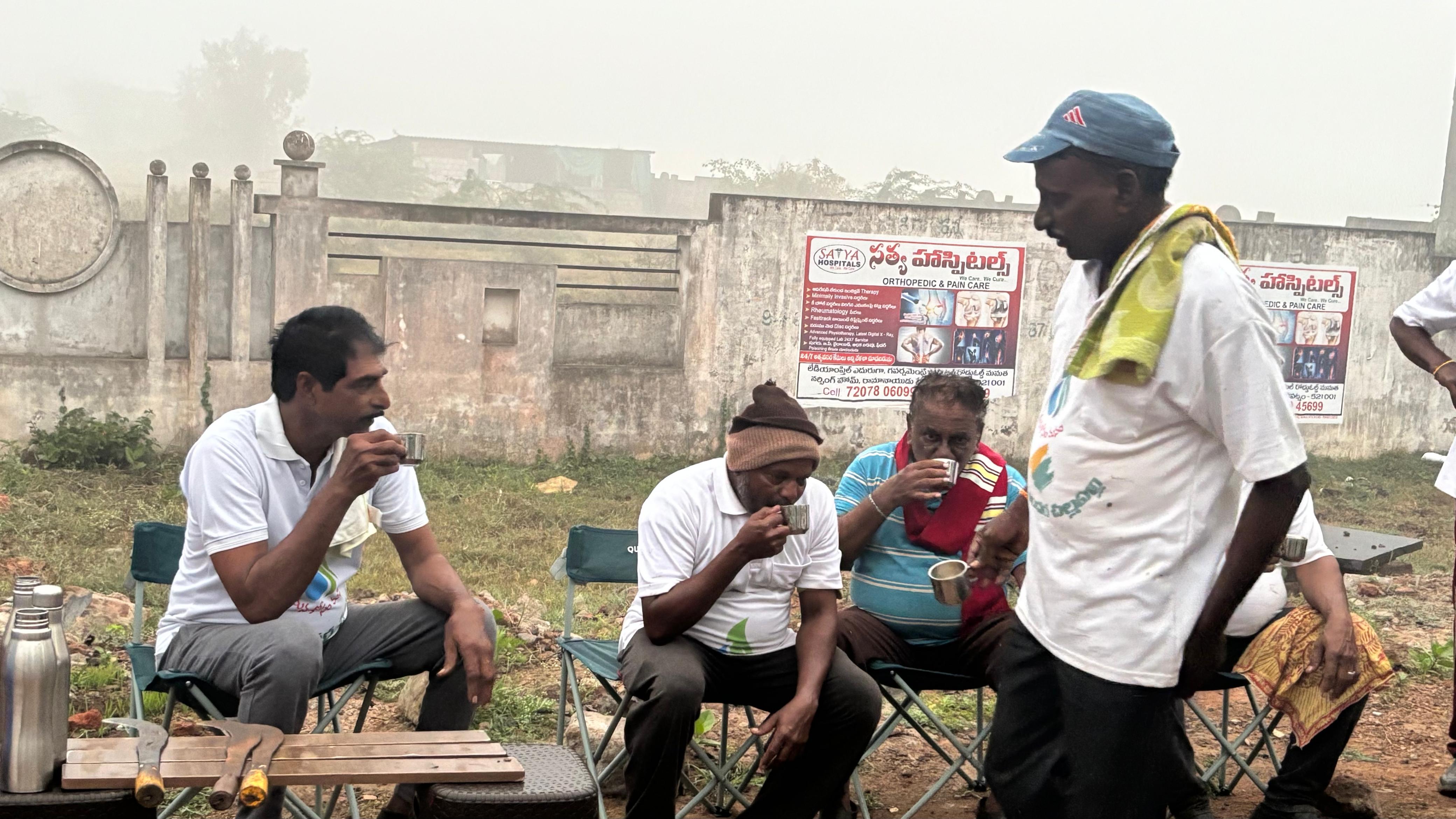 చలిని తట్టుకొని, పనుల్లో చురుకు కోసం ‘చెక్ పోస్టు బాబాయి’ అదలింపులే! ఊడ్చే నలుగురి శ్రమానందం మహిళలదే! గత తుఫానుకు విరిగి పడిన కొమ్మ రెమ్మల్ని ఏరి గుట్టలు పెట్టే వాళ్ళ శ్రద్ధా తక్కువ కాదే?